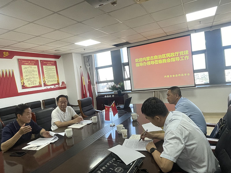 2021年9月8日,内蒙古自治区民政厅党建指导员张凯、杨宏,前来自治区食品药品学会检查指导工作。学会副理事长闫同义、秘书长张永祥出席汇报会议。