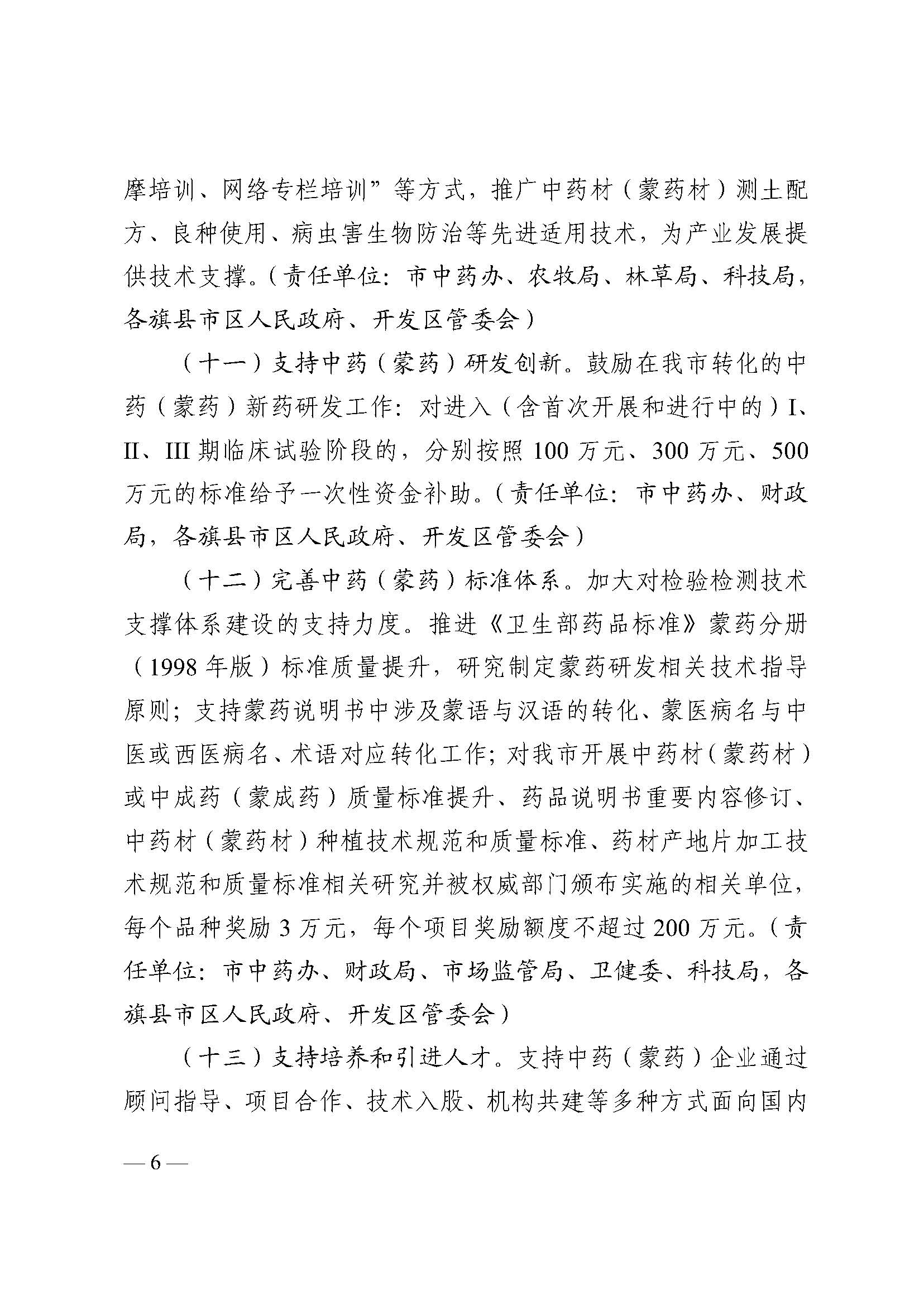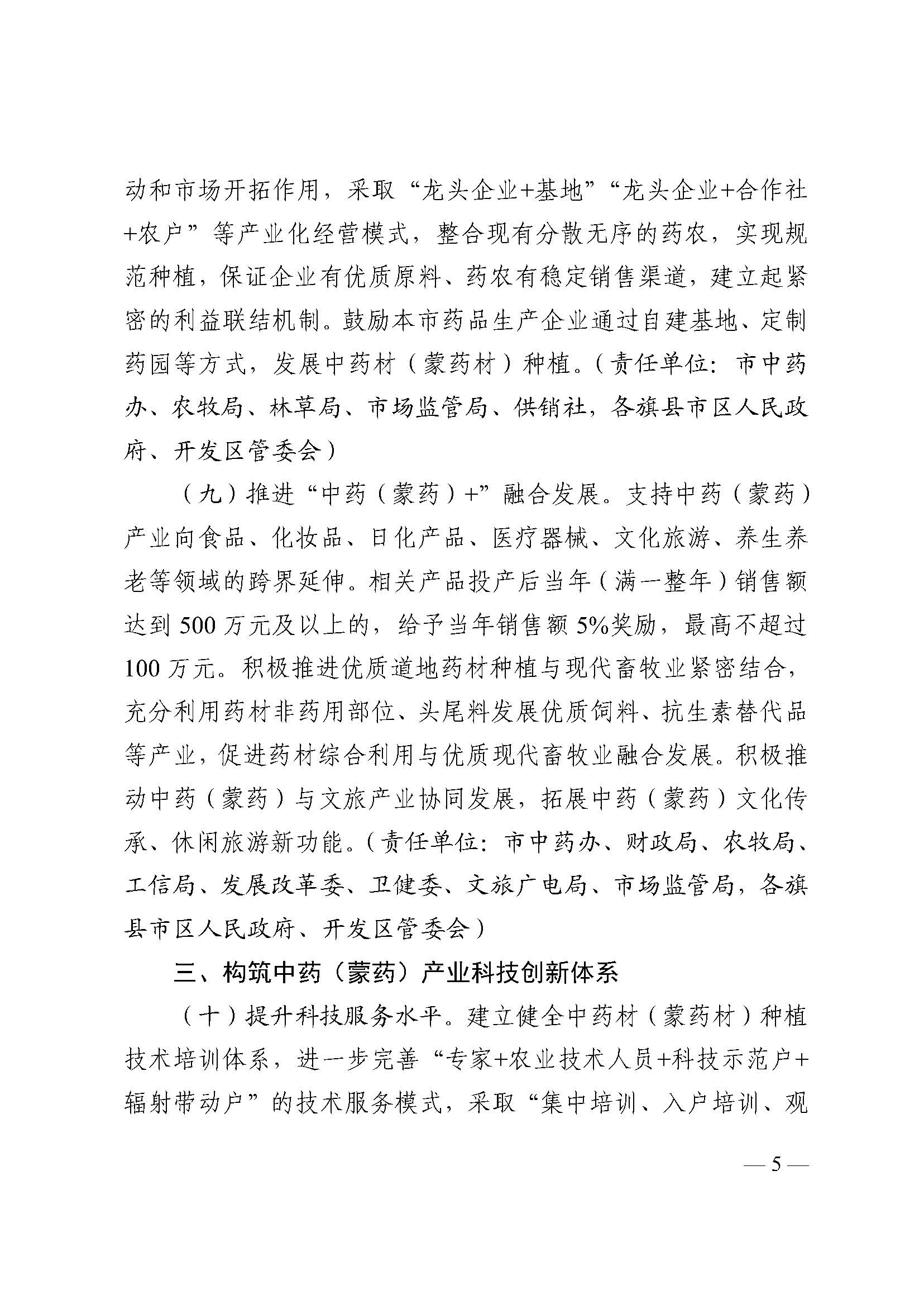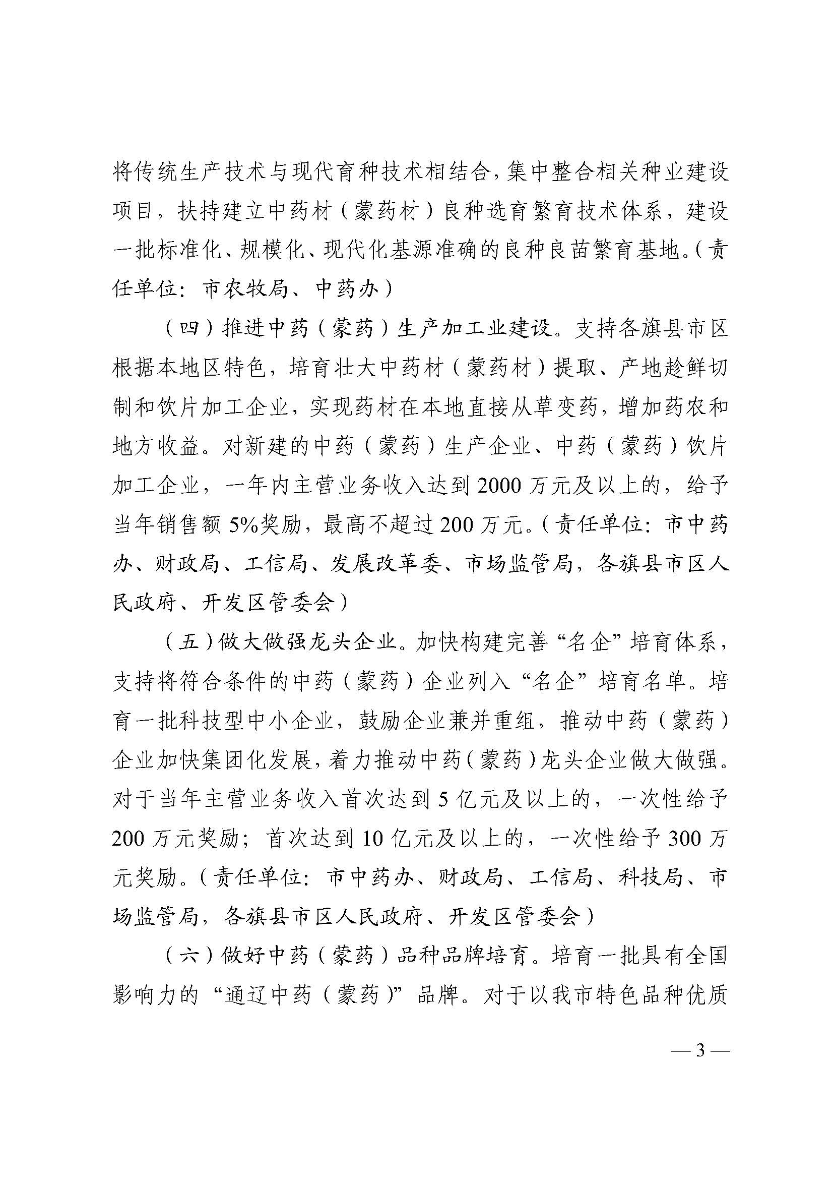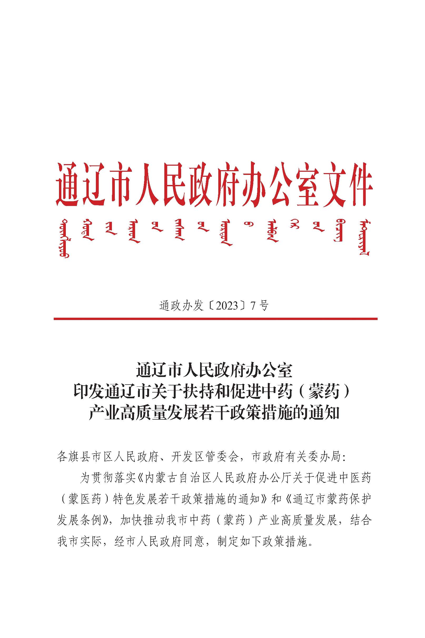 通辽市人民政府办公室 印发通辽市关于扶持和促进中药(蒙药) 产业高质量发展若干政策措施的通知