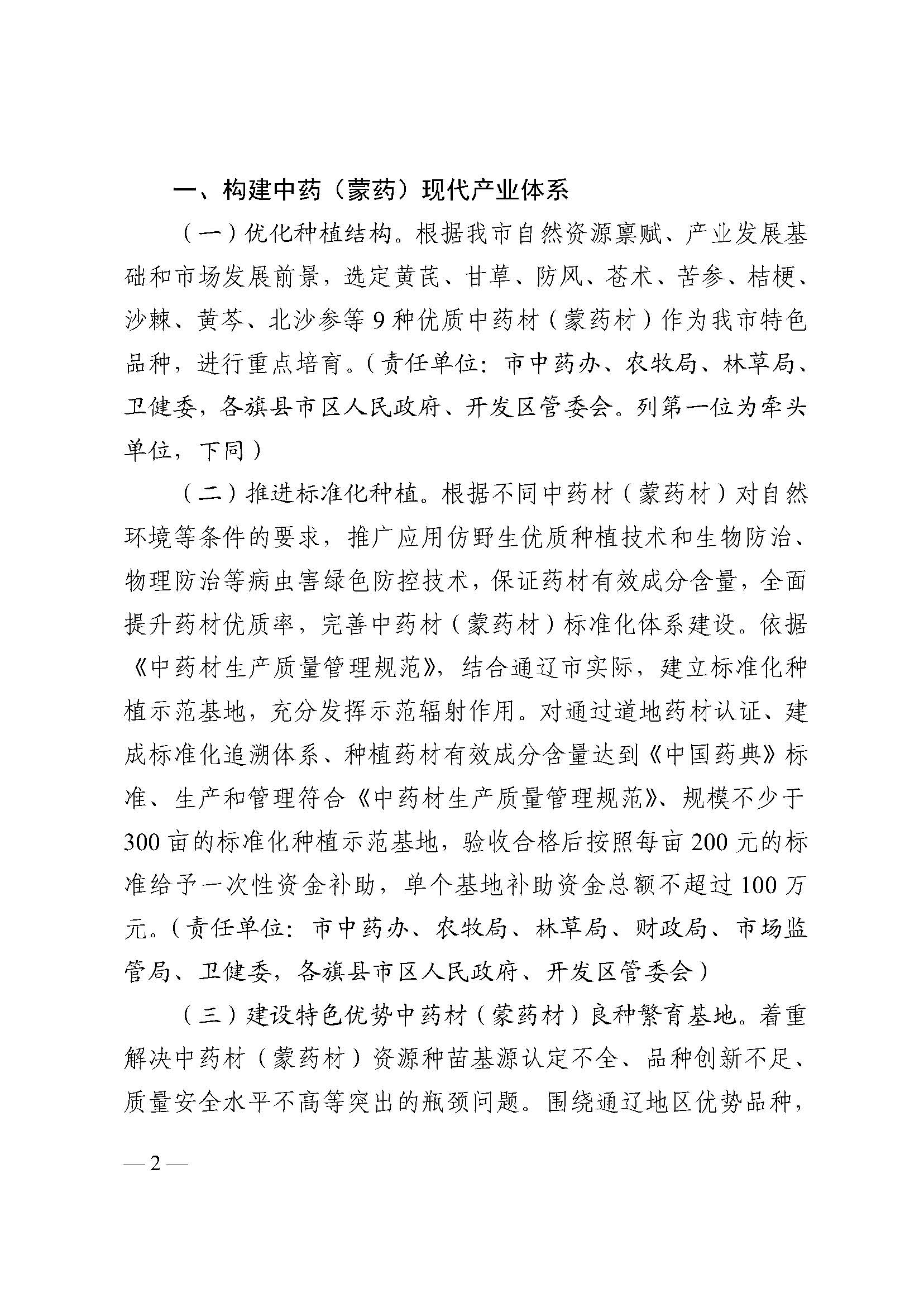 • 通辽市人民政府办公室 印发通辽市关于扶持和促进中药(蒙药) 产业高质量...