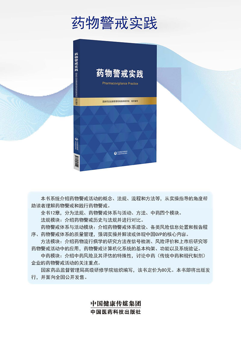 由中国医药科技出版社,出版发行的《药物警戒实践》《化学药品通用名称词干及其应用》之书,是国家药品监督管理局编写的最新版实用书,该书由自治区食品药品学会统一征订,有需求者请与学会联系征订。联系人:巴音玛 联系电话:18804889788
