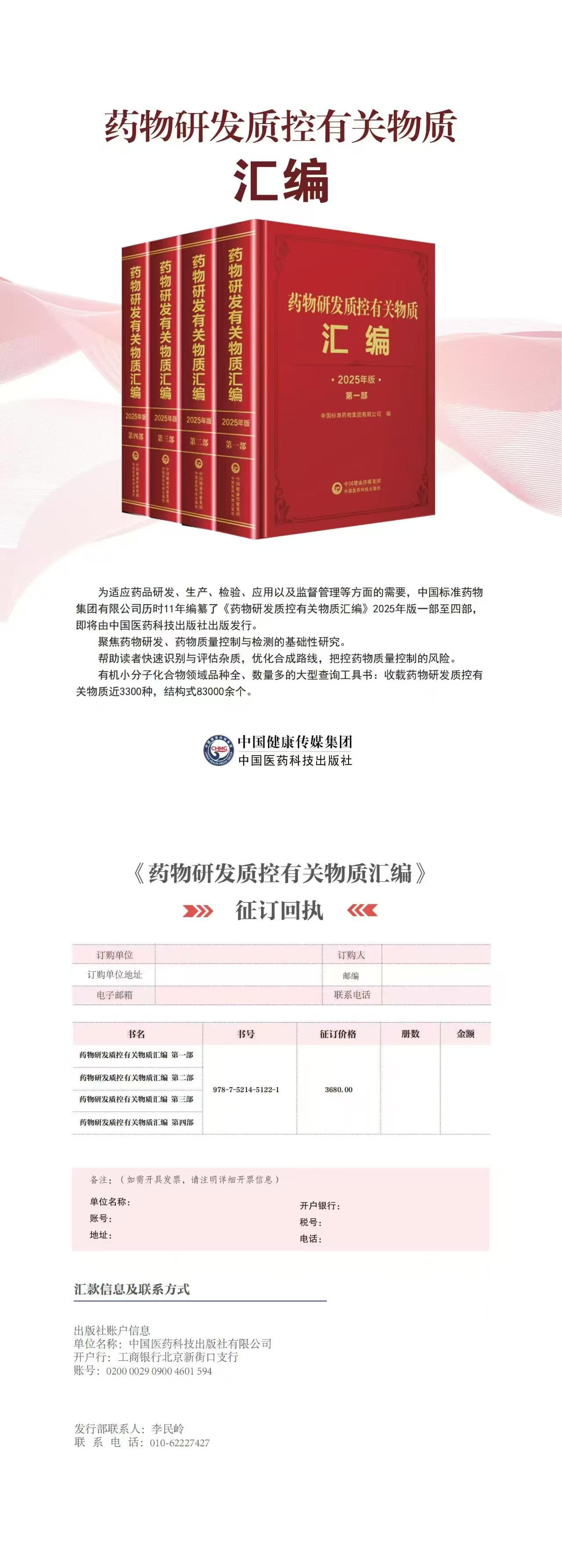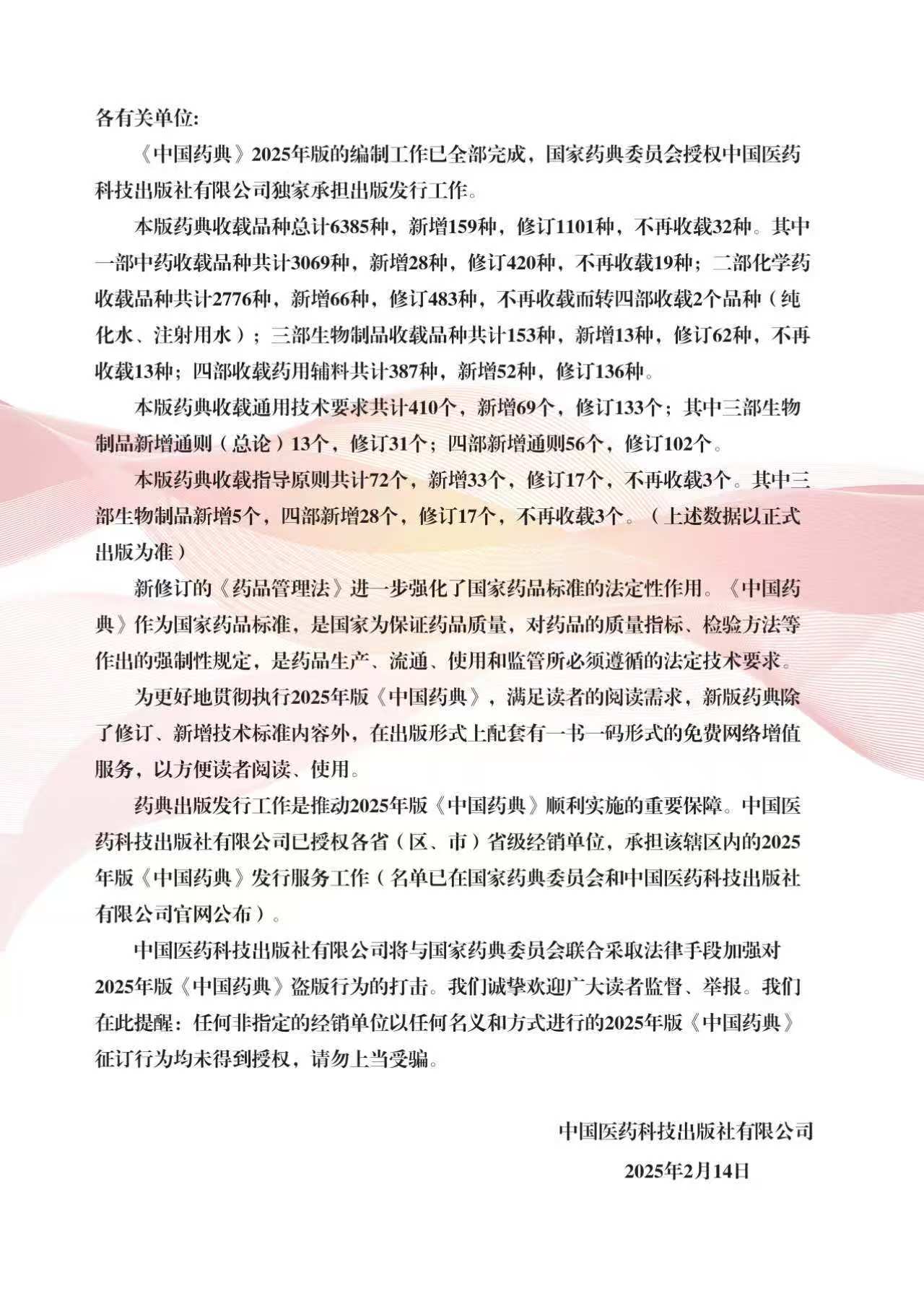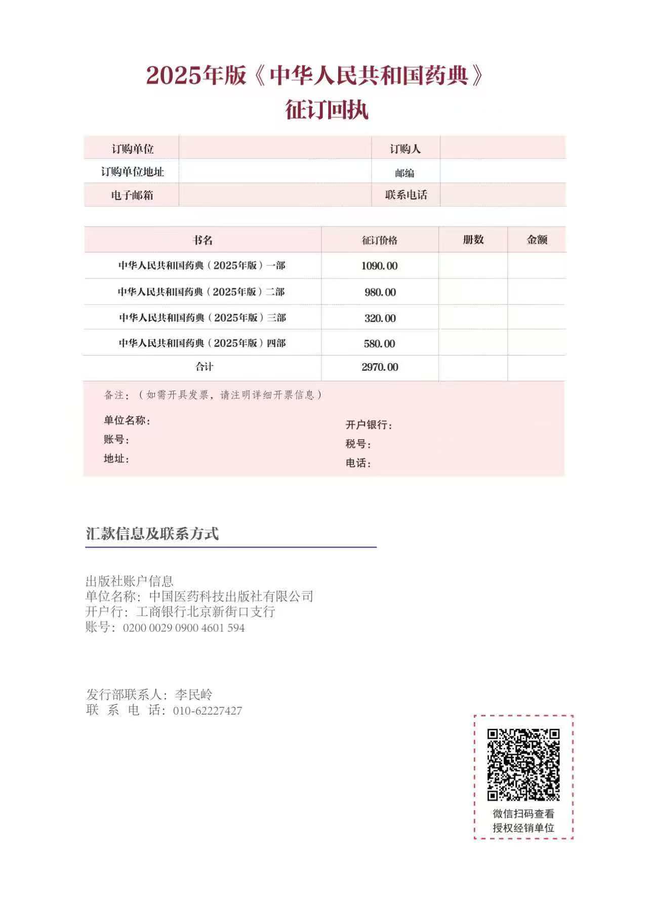 由中国医药科技出版社出版的《中华人民共和国药典》2025年版一到四部已经开始发售,请有订购需求的单位和学会联系购买。
