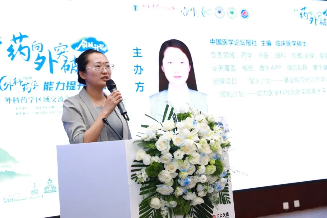 中国医学论坛报社王思恒主编代表主办方进行致辞发言,她首先介绍了中国医学论坛报社,强调报社作为国家卫生健康委员会主管的一家医学专业媒体,自1983年创刊至今,报社已经走过了41年的历程,累计发布报纸版面达8万余个,目前,报社正在不断适应新时代的变化,除了传统的纸媒外,还拥有注册用户达到200余万人的壹生APP,以全媒体平台促进我国医学交流,提升全民健康素养。在谈到外科药学时,王主编提到,在郑志华主编和各位专家的引领下,《中国医学论坛报》外科药学编委会不断探索外科药学的深刻专业内涵,持续创新发展外科药学。王主编最后强调,作为专业医学媒体,报社将全力支持专家们在专业信息探讨和平台搭建方面的工作,集合线上线下的媒体优势,助力外科药学的高质量发展。