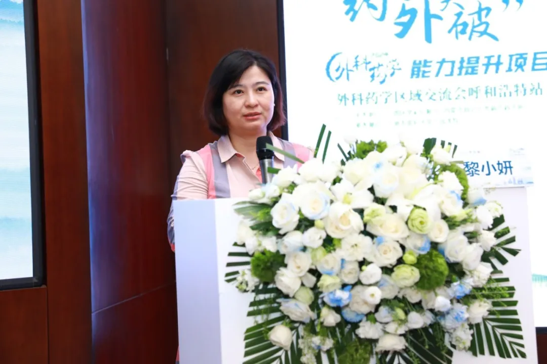 会议在内蒙古医科大学附属医院药学部李莎副部长的主持下开幕。会议伊始,内蒙古医科大学附属医院蔡超院长发表开场致辞,蔡院长指出,外科药学作为现代医学的重要组成部分,其发展水平直接关系到外科治疗效果和患者的生命质量。随着内科临床药学体系建设的不断完善,外科领域对临床药师的需求不断增加,特别是加速康复外科(ERAS)理念的提出,对围手术期的疼痛、恶心、呕吐、凝血障碍、感染等并发症的个体化精准管理提出了更高的要求。此次交流会的目的是为大家提供一个学习交流的平台,共同探讨外科药学的发展和未来,促进医院药学服务模式的转变,提升医院的综合药学服务能力。蔡院长指出,目前外科药学在内蒙古还处于初级探索阶段,距离形成完整的人才结构和学科体系还有很长的路要走。本次学术交流会将围绕外科最新进展、热点问题和实践应用进行深入探讨,充分借鉴成功的外科药学发展理念、组织结构及学科体系,为内蒙古及全国外科药学事业的发展贡献力量。