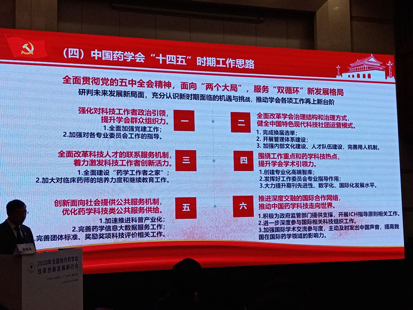 为深入贯彻落实党的19届五中全会精神,贯彻新发展格局,不断提升学会党组织建设能力,全面促进学会各项工作健康发展,加强与全国各地药学会的沟通、交流和联系,共同推动学会改革创新发展,内蒙古自治区食品药品学会派员参加在重庆由中国药学会召开2020年全国地方药学会改革创新发展研讨会,并向大会提交了发言材料。